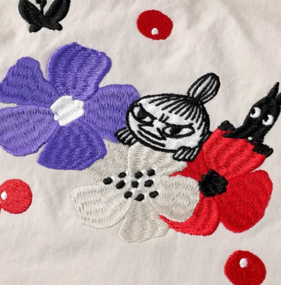 それぞれのカラーにムーミン、リトルミイ、スナフキンが刺繍されています。