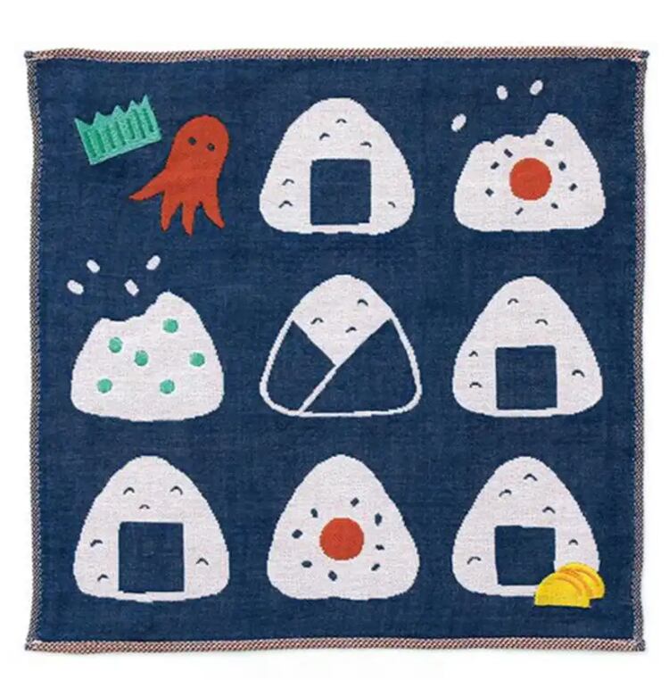 レトロなイラストに折りたたんだときも可愛いワンポイント刺繍が魅力のガーゼハンカチ。